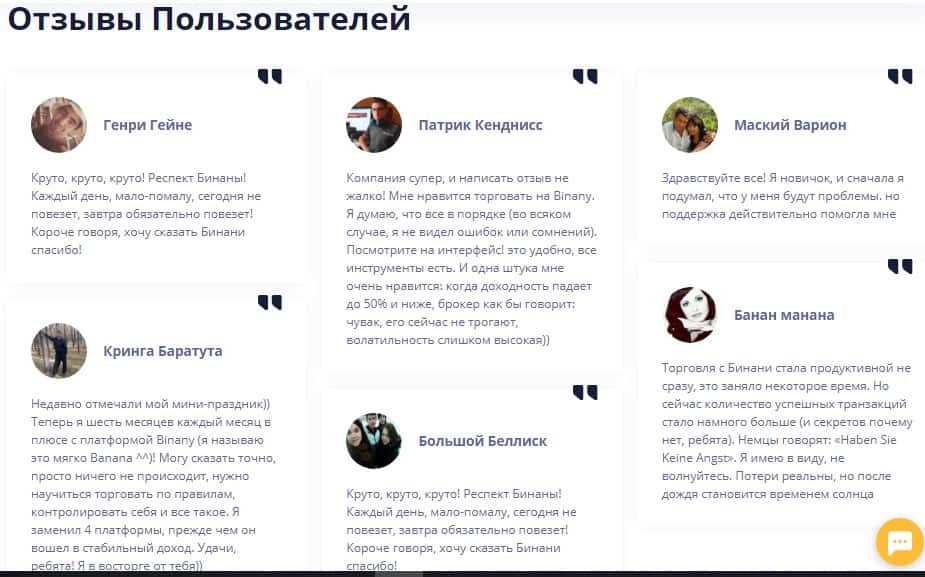 Заказные хвалебные отзывы счастливых и удачливых клиентов инвестиционной компании Бинани