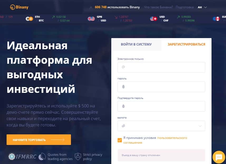 Некоторые сведения о брокерской компании Binany Com с ее официального сайта