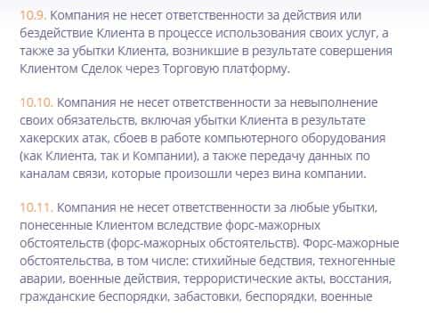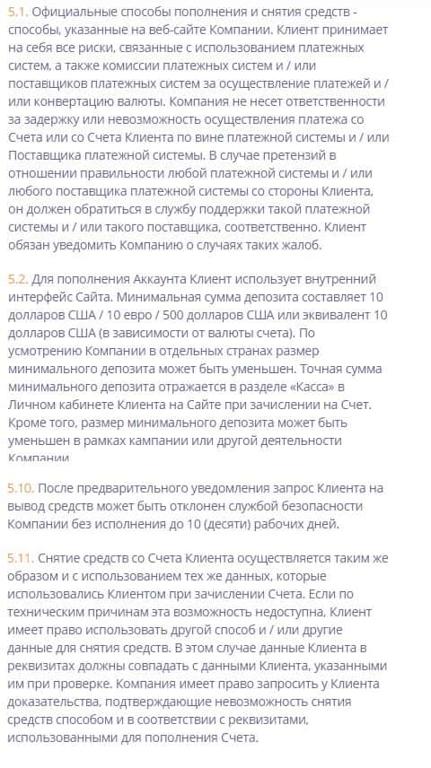 Согласно клиентскому соглашению брокерской компании Binany Com, клиент принмает на себя все риски и комиссии по торговым операциям, а администрация никакой ответственности за задержку или невозможность проведения платежных операций не несет. Запрос клиента на вывод средств может быть компанией отклонен.
