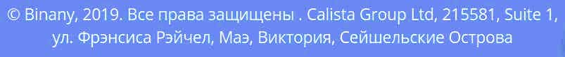 - юридический адрес: Binany, Calista Group Ltd, 215581, Suite 1, ул. Фрэнсиса Рэйчел, Маэ, Виктория, Сейшельские Острова.