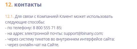 - адрес электронной почты: support@binany com