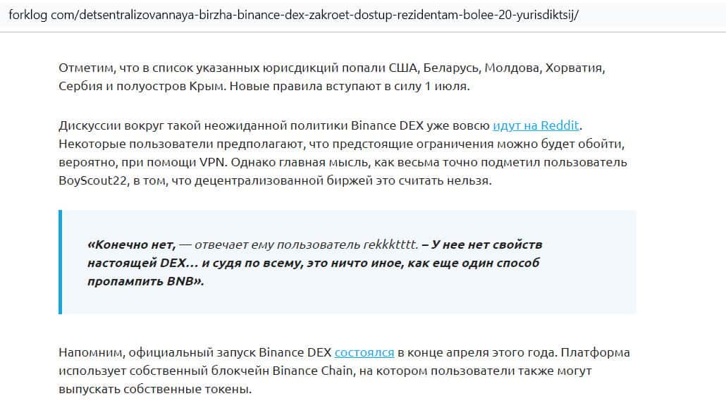 Сайт forklog com разоблачает мошенничество создателей биржи Бинанс ДЕКС