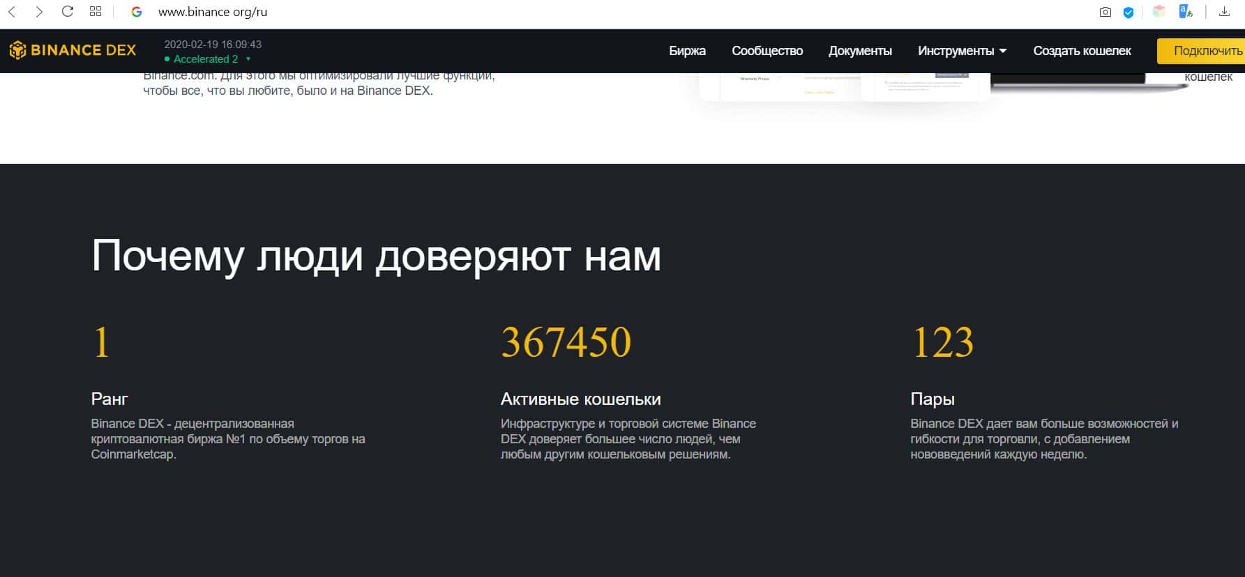 - Вранье владельцев проекта Binance DEX на главной странице сайта