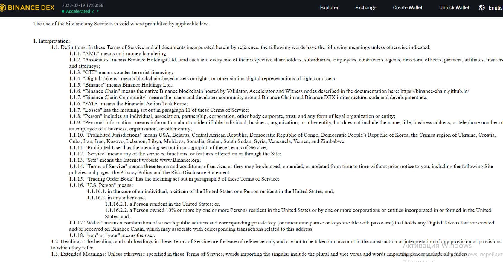 - Клиентское соглашение и политика конфиденциальности компании Binance DEX