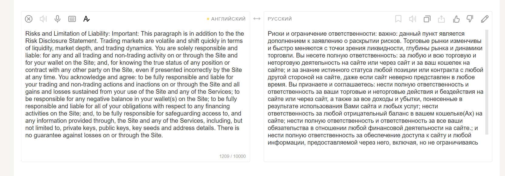 На сайте Binance DEX можно найти такие документы, как клиентское соглашение и политика конфиденциальности. Оба положения недоступны на русском языке даже в русскоязычной версии сайта. Тем, кто хочет их изучить, необходимо воспользоваться переводчиком.