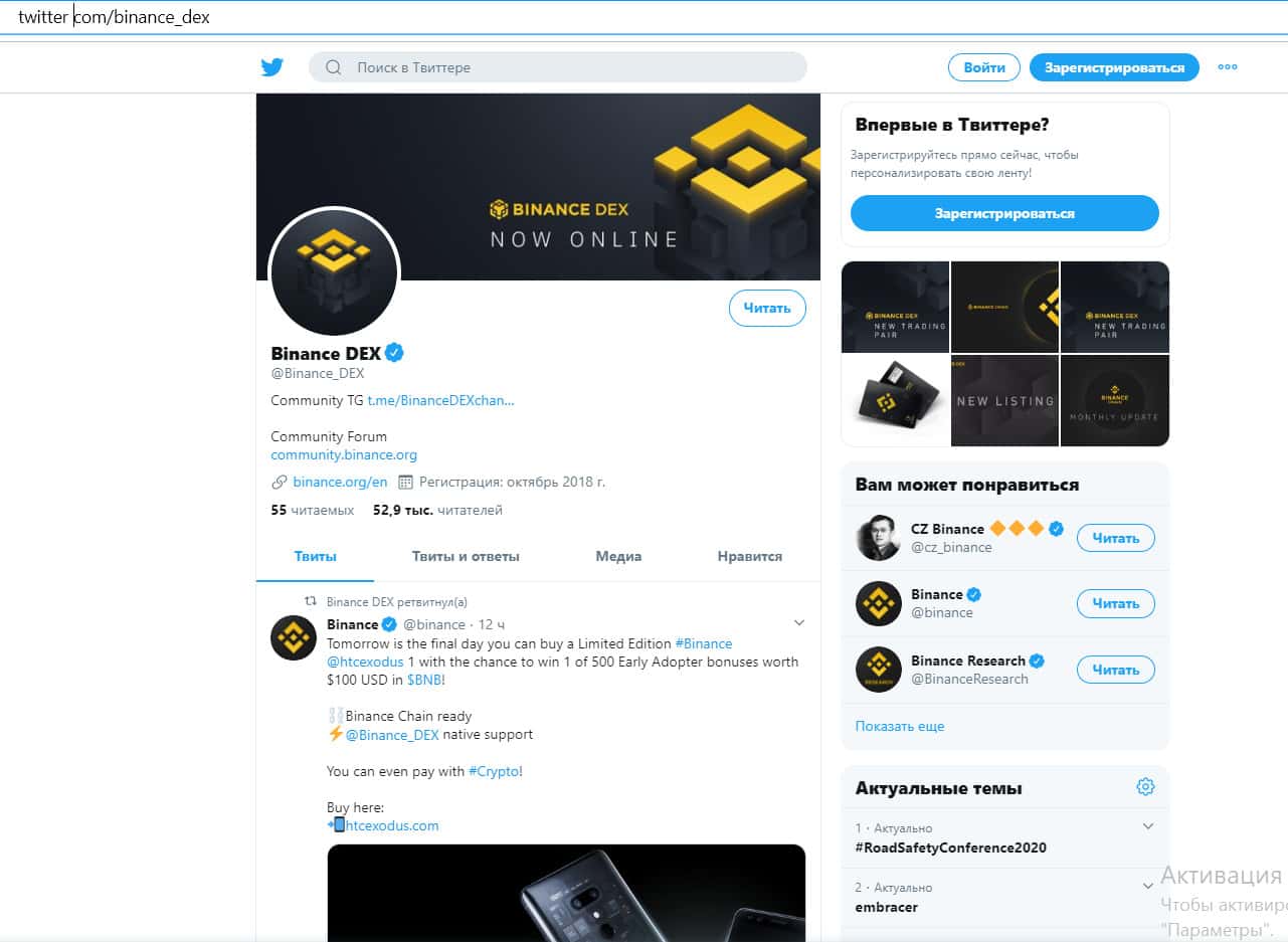 - Есть ли у компании Binance DEX аккаунты в социальных сетях