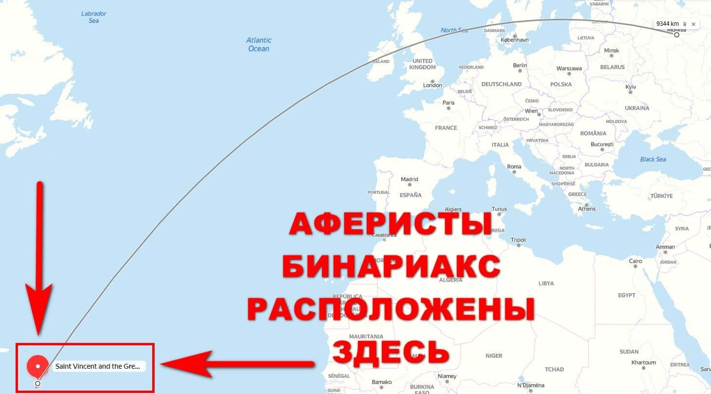 Далее представлена карта местоположения бинарно-опционной конторы Binariux Net. Как оказалось мошенники находятся в оффшорной зоне на островах Сент-Винсент и Гренадины.