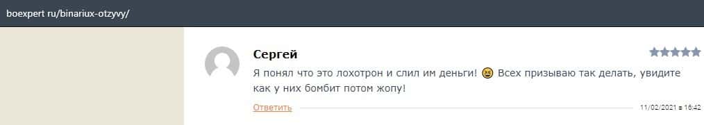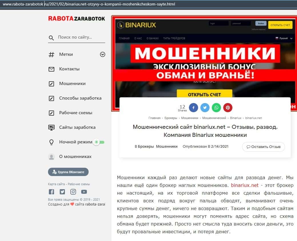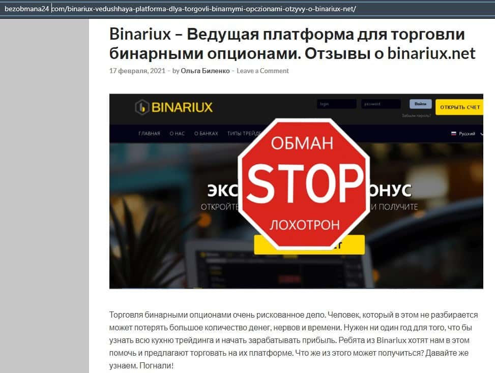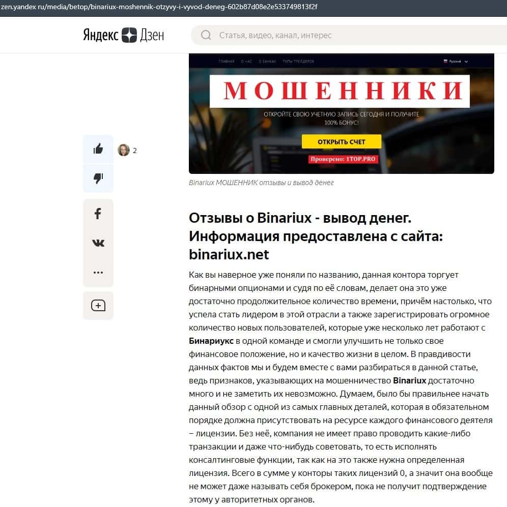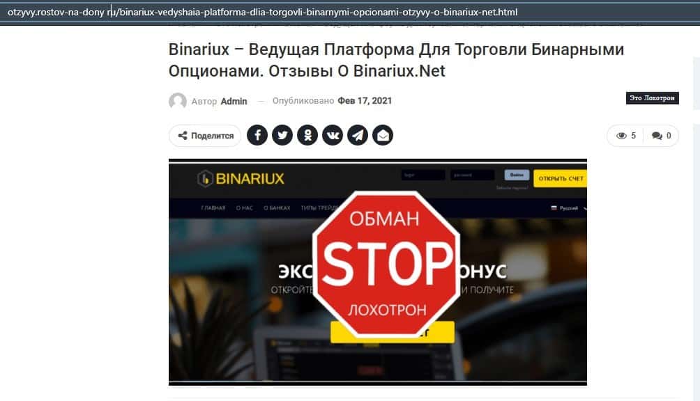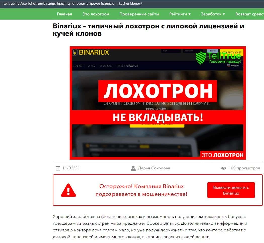 Еще в одной статье описывается, контора Binariux Net занимается мошенничеством и она подводит своих жертв к внесению денег. Это бинарная кухня по разводу наивной клиентуры.