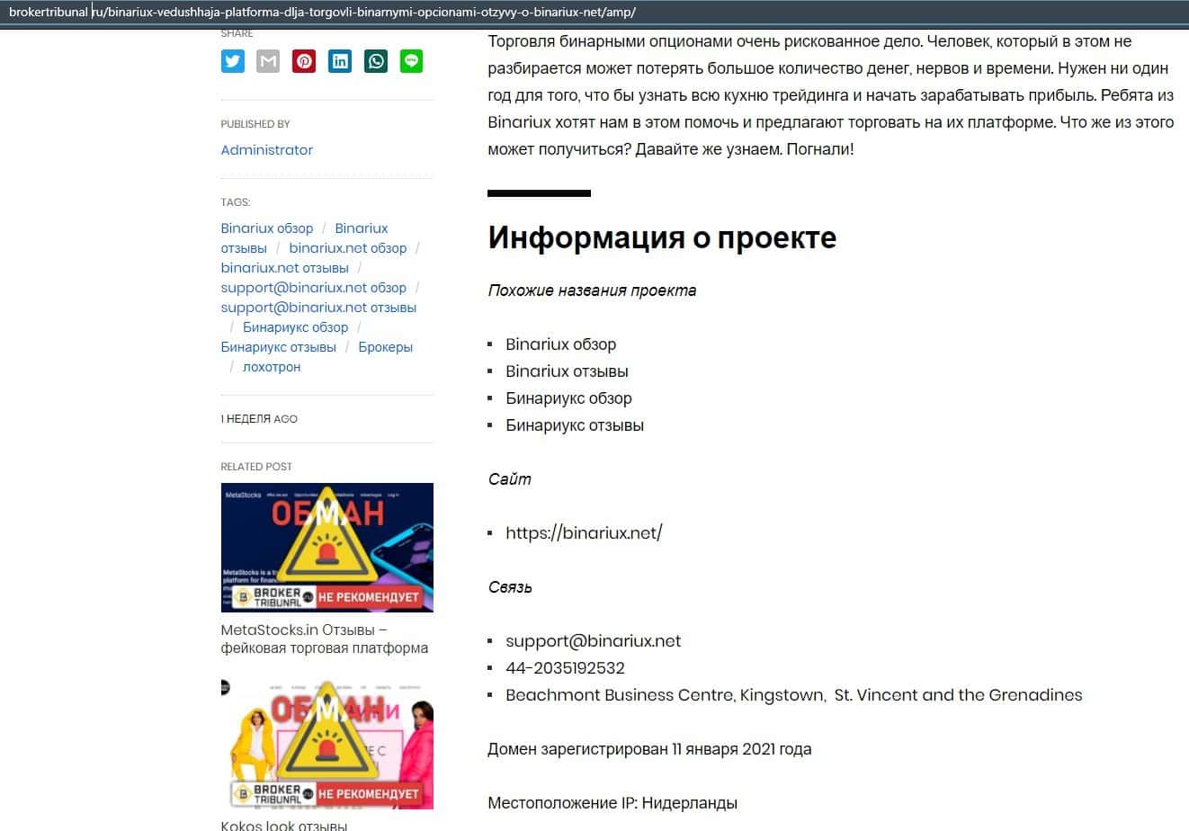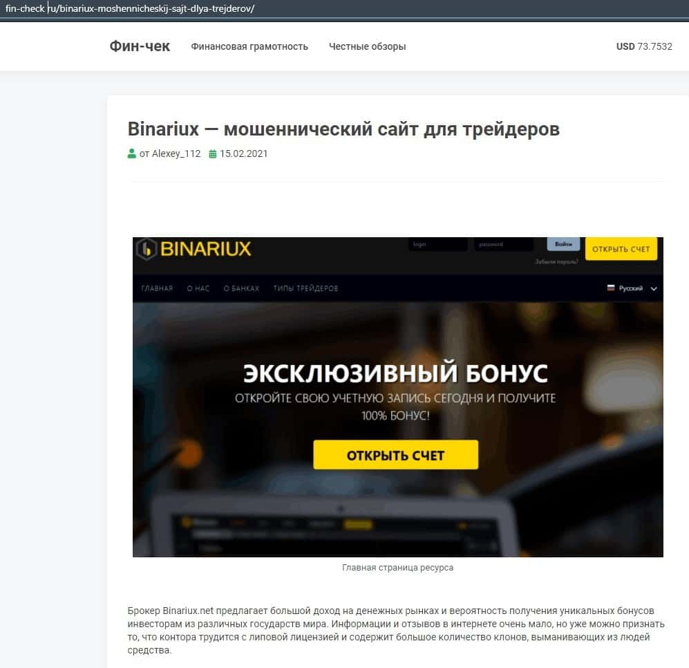Информация о лохотроне Binariux Net представлена еще в одном материале, где подозревается, что он занимается мошенничеством, а отзывы в сети это только подтверждают.