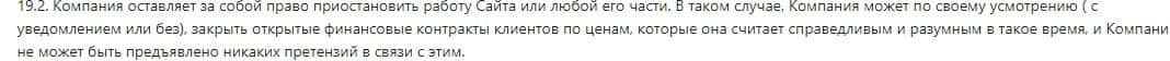 В соглашении указано, что контора Бинариакс оставляет за собой право остановить работу своего сайта, либо какую-то его часть без предварительного уведомления своих клиентов.