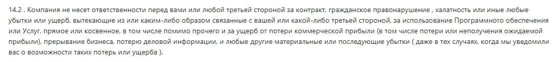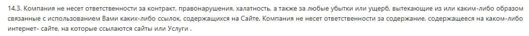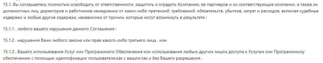 Лохотрон Binariux Net также указал, что он не несет ответственности перед клиентам за то что они могут нарушить закон и это может принести определенные убытки пострадавшим.