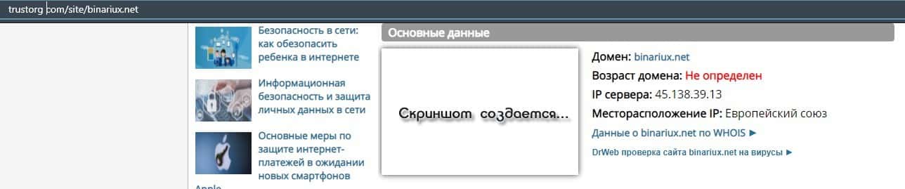 На одном из интернет-сайтов, мы решили проверить, кто же владеет сайтом Binariux Net. Как оказалось его имя вообще не известно, так как аферисты скрывают свою личность.