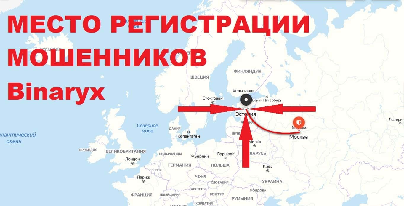Фирма финансовых разводил Binaryx указала, что зарегистрирована в Эстонии, но доверять этой информации нельзя, так как мошенники используют фальшивые адреса.