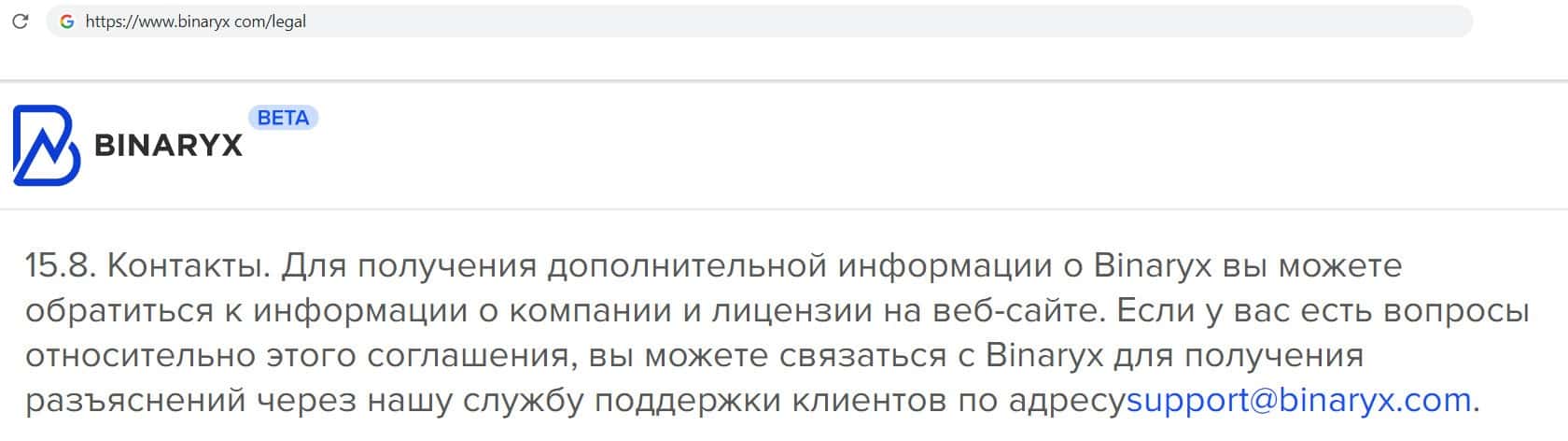 Фирма мошенников Бинарикс не указала контактный телефонный номер. В качестве контактов компания разводил указала лишь адрес электронной почты. Почта махинаторов: