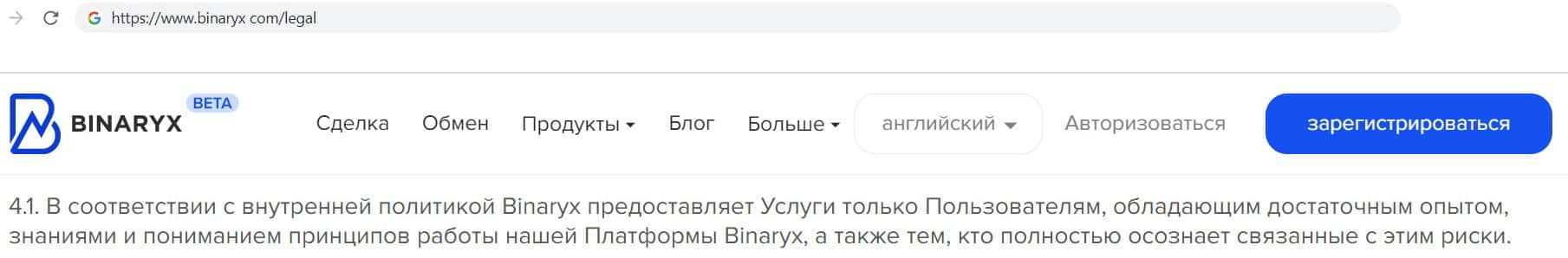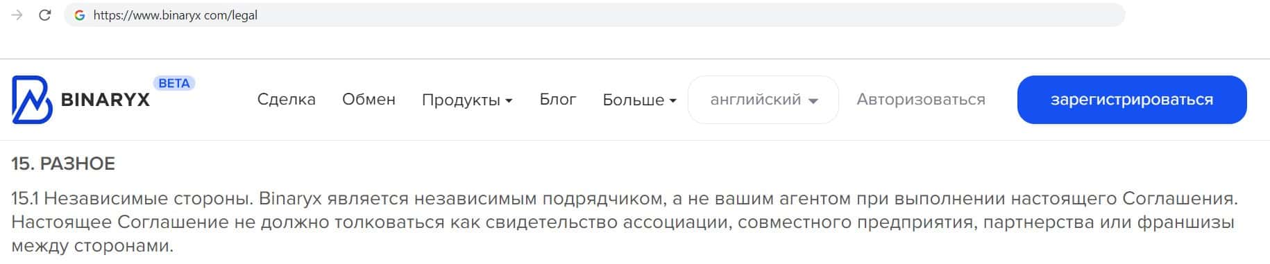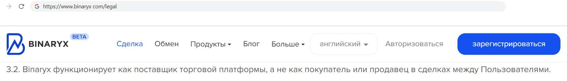 Для того что бы снять с себя ответственность. компания кидал Binaryx в своём соглашении указала, что она всего лишь поставщик платформы, то есть никакой ответственности не несёт.