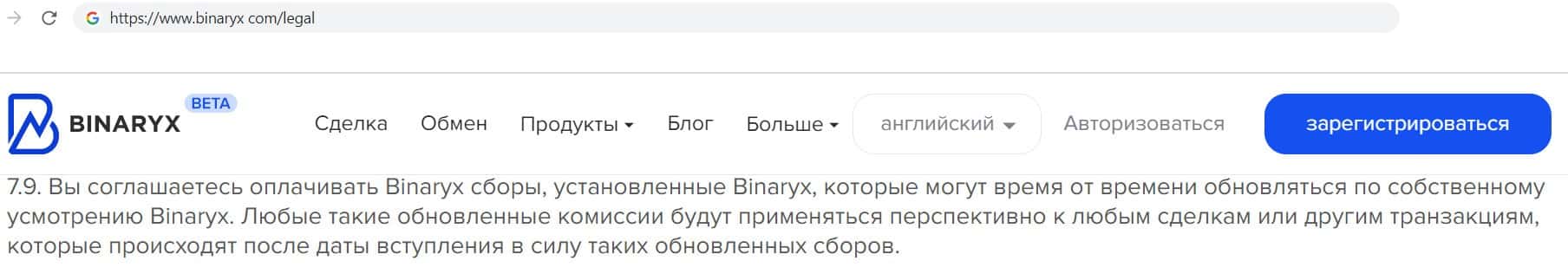 Компания финансовых кидал Binaryx указала, что при использовании её сервиса с клиента может взиматься комиссия сторонней службы, за которую компания не несёт ответственности.
