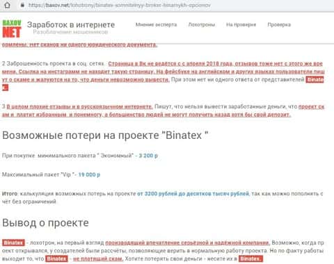 Негативная статья о жуликах Бинатекс с ресурса baxov net