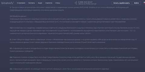 Политика конфиденциальности шулеров Binatex