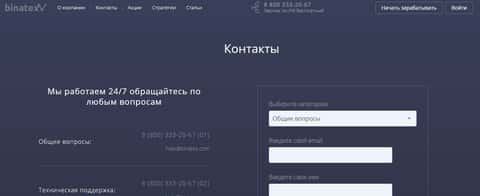 - почта - help@binatex com;