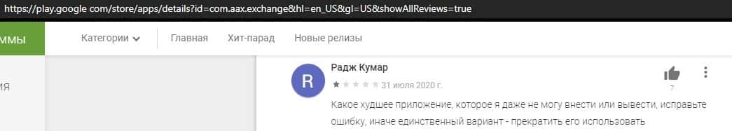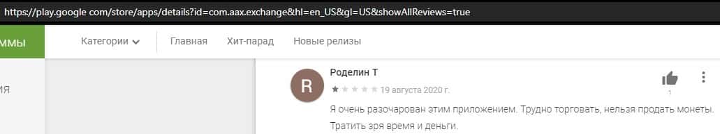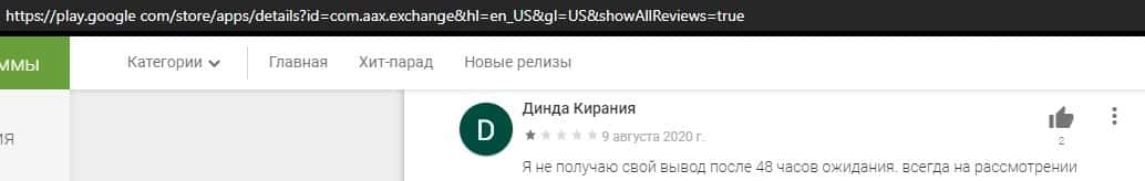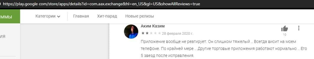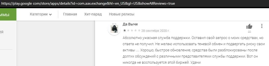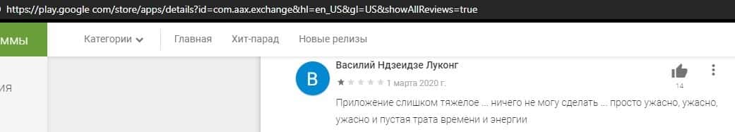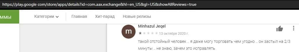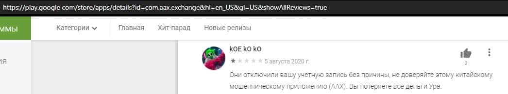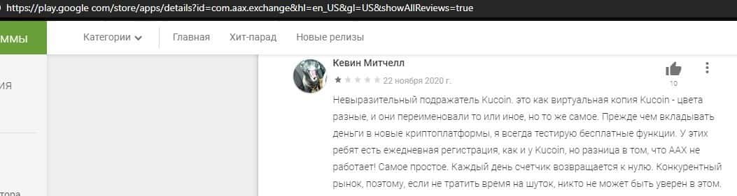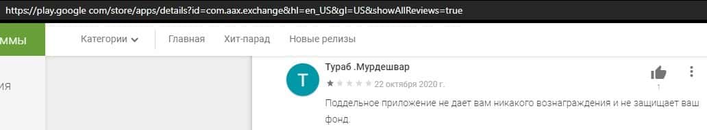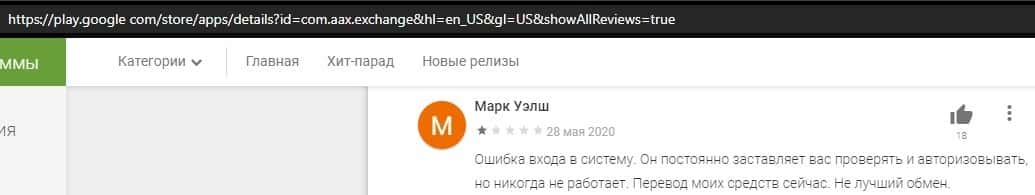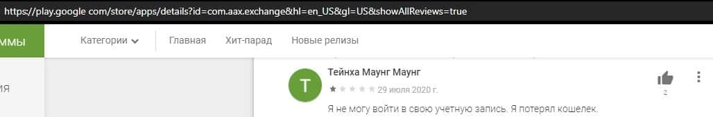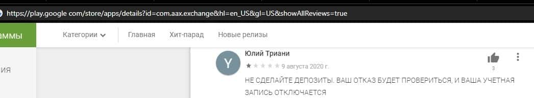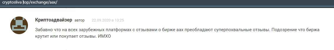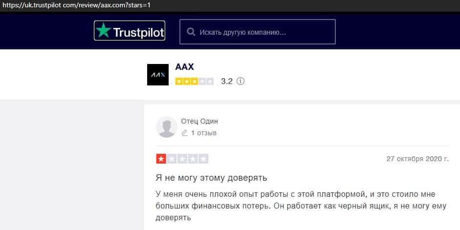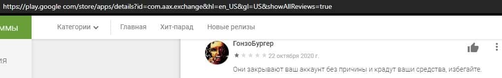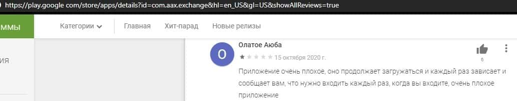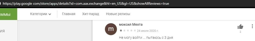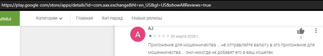 - Плохой отзыв о криптовалютном лохотроне AAX