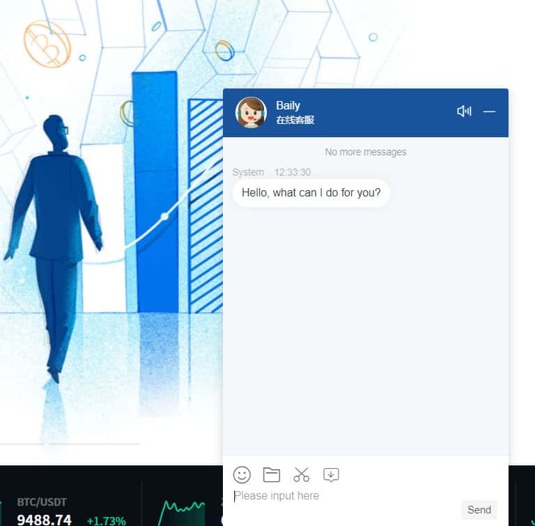 Еще в углу страницы имеется он-лайн чат с сотрудниками криптовалютной биржи Биржа ААХ. Общение ведется на английском языке, насколько понятно из интерфейса.