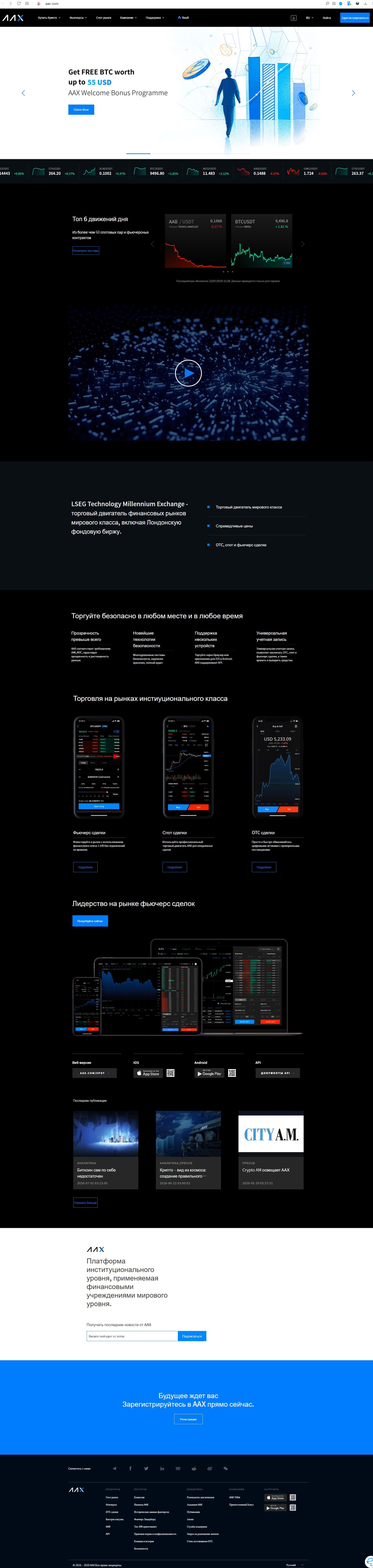 Главная страница криптовалютной площадки Биржа ААХ ничем не отличается от большинства других лохотронов. Никакой полезной информации, одни лозунги и обещания.