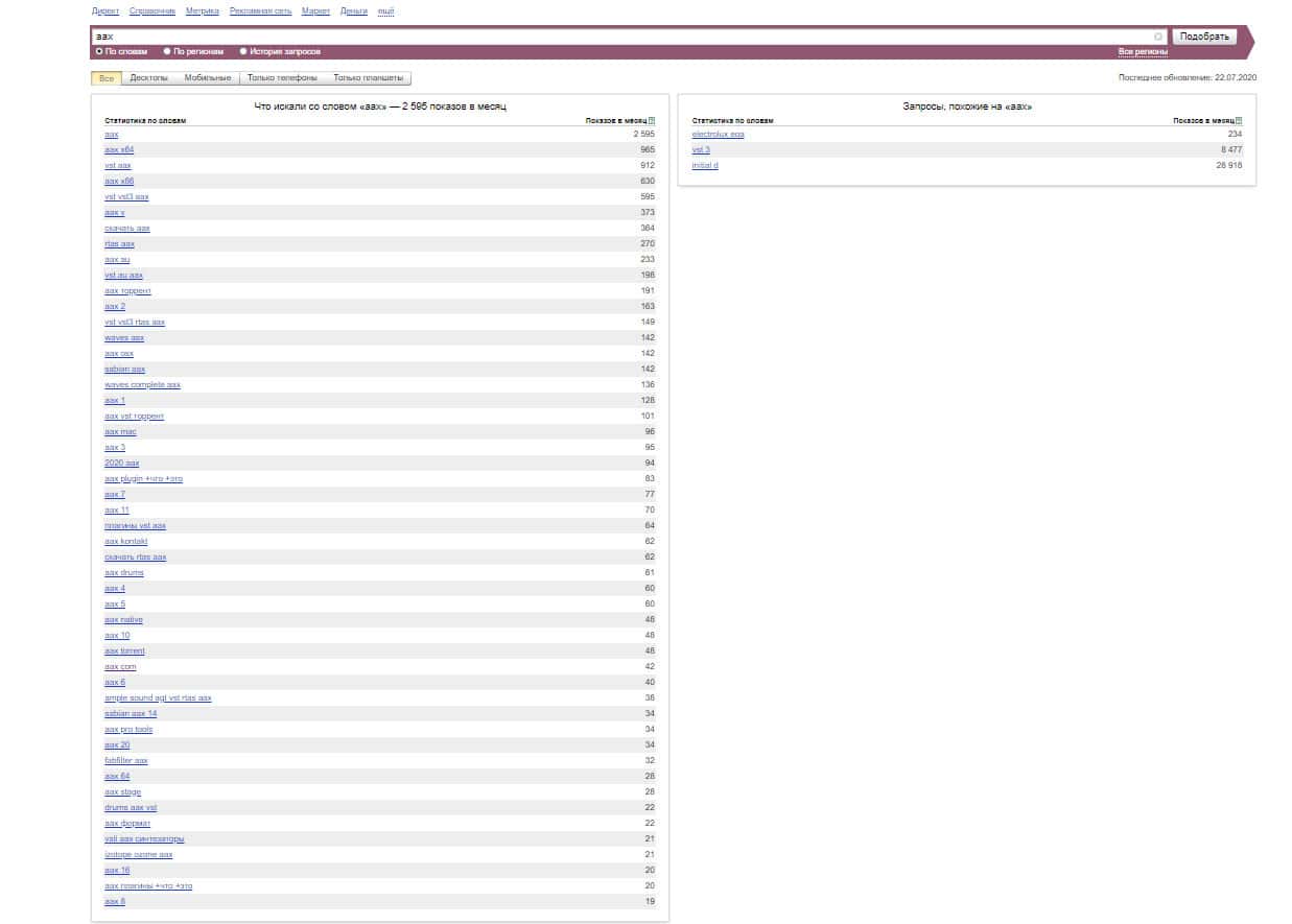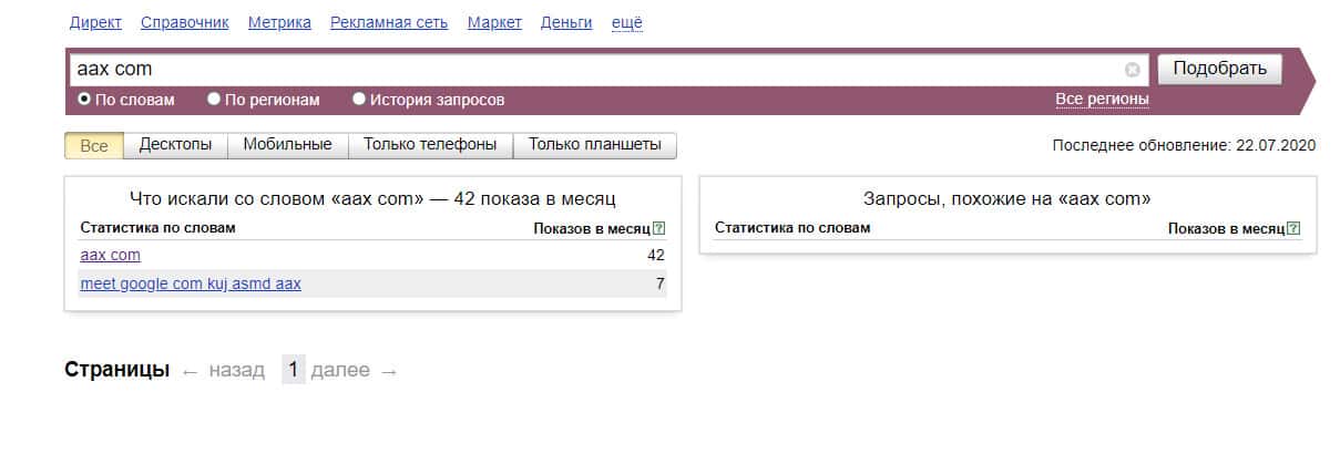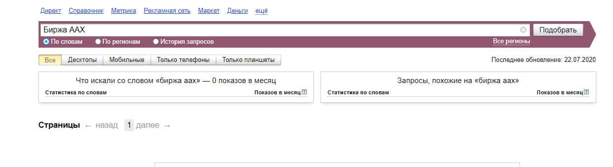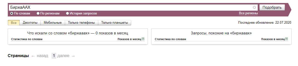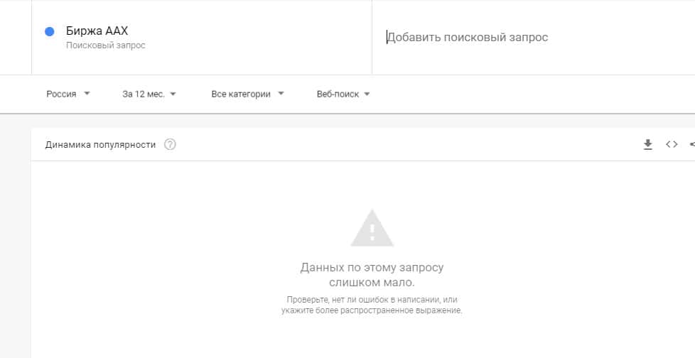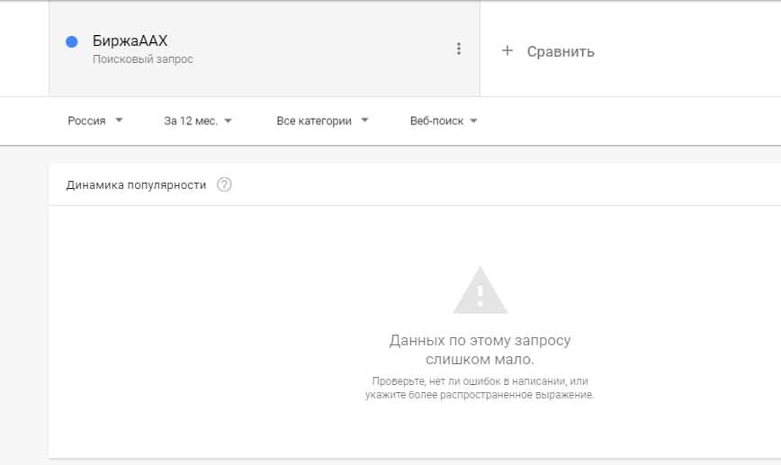 Посмотрим, сколько раз люди искали название бренда "Биржа ААХ" на русском языке с пробелом. Итог: незначительно количество раз.