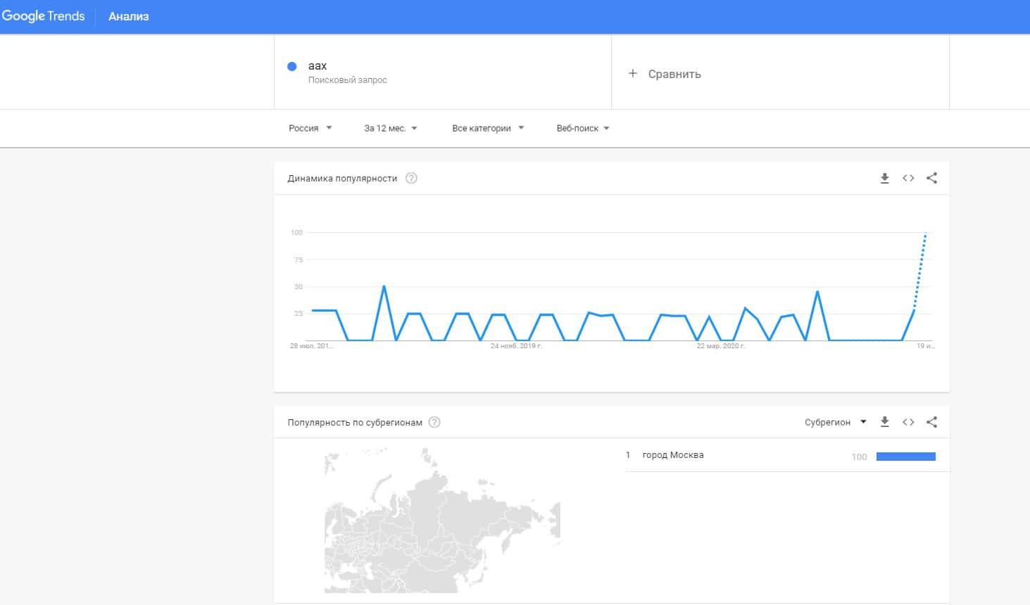 Количество запросов по домену "aax com", вбитого в поисковик Гугл без точки, с пробелом, также происходило крайне мало раз.