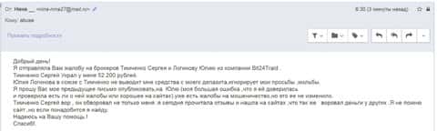 Важной из этой жалобы стала информация, что пострадавшая ассоциирует компанию Бит 24 Трейд и других мошенников: Трейд 24.
