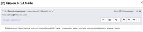 Еще одна партия облапошенных клиентов конторой Bit 24 Trade