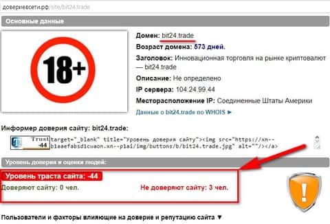 Интернет-ресурс довериевсети рф не доверяет конторе Bit 24 Trade