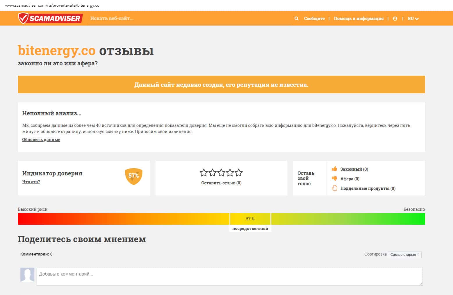 На сайте scamadviser com возникает вопрос: bitenergy co платит или это ещё одни очередной мошеннический проект. Только огромное количество таких же проектов с просто разными доменами уже пугает и заставляет задуматься: а стоит ли рисковать своими деньгами, отдавая в контору, где откровенно на каждом шагу лгут?