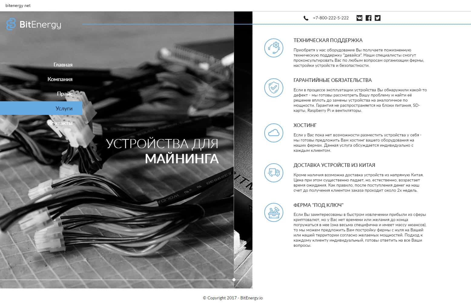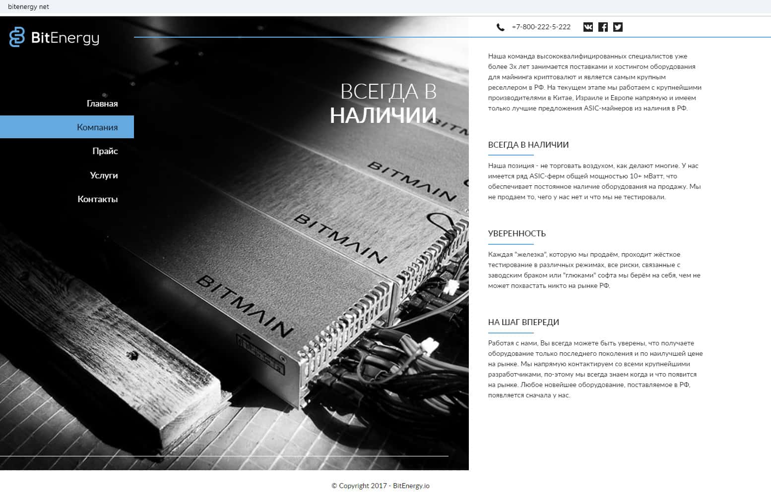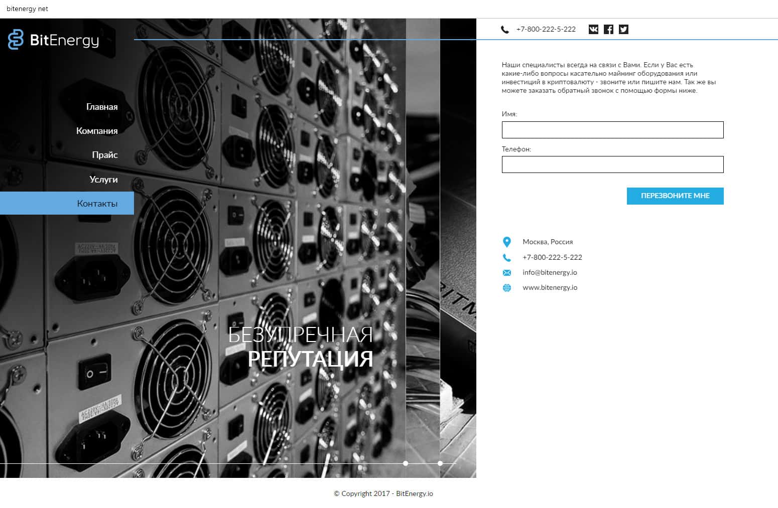 - Главная страница мошеннического сайта-криптобиржи Бит Энерджи