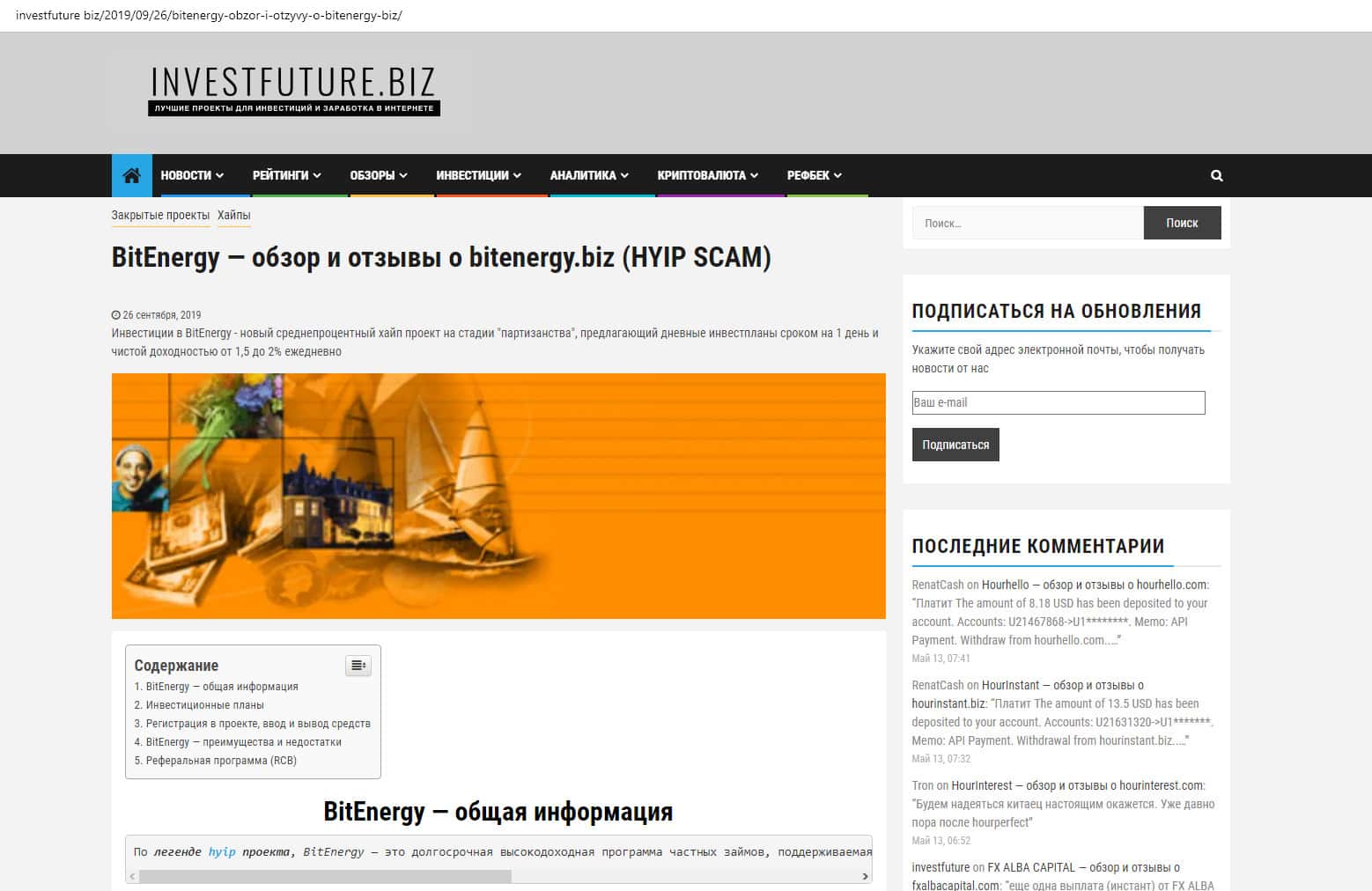 - Investfuture назвало BitEnergy hyip-scam проектом