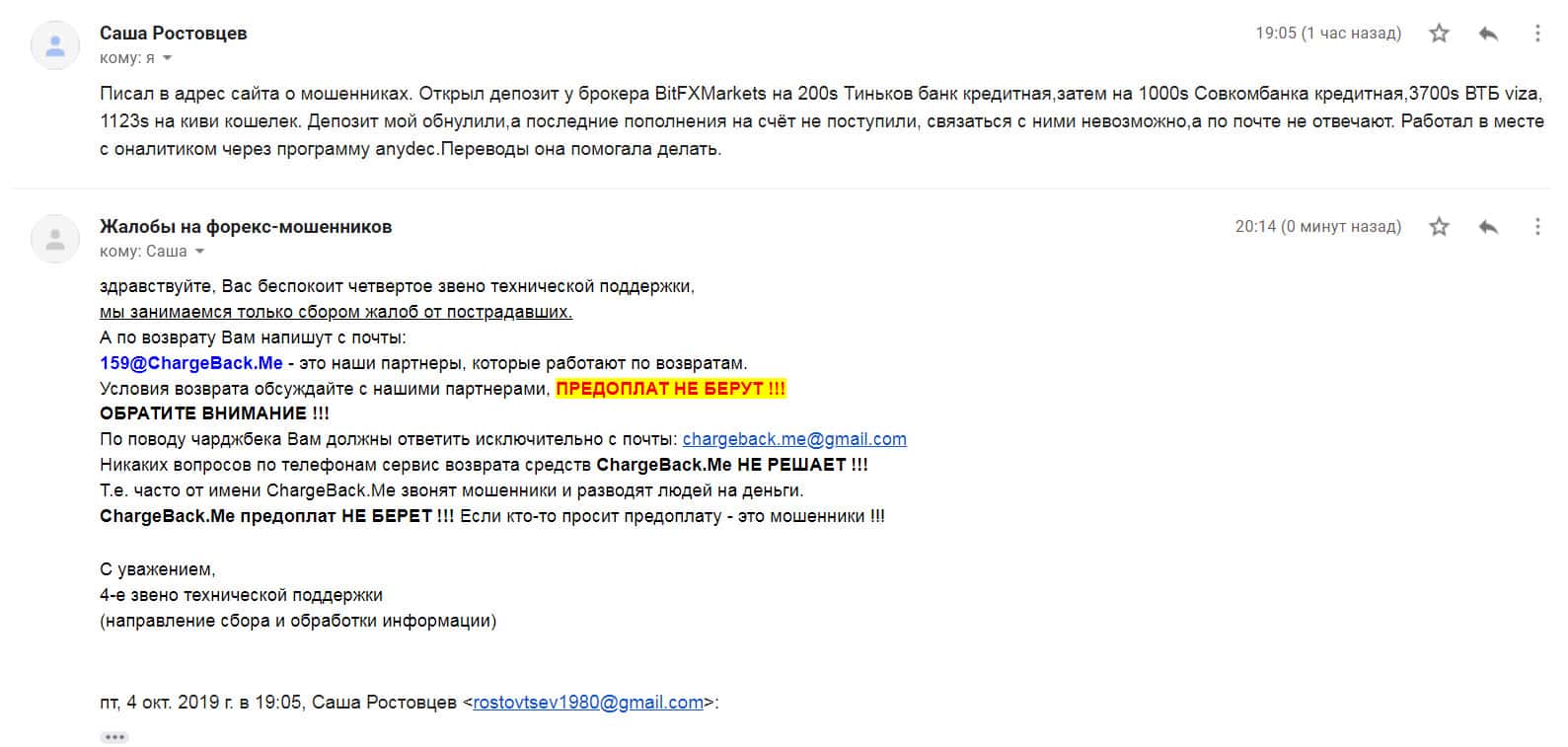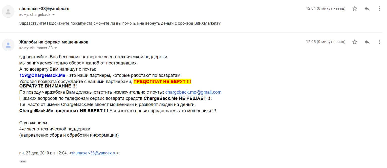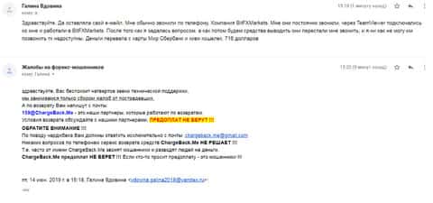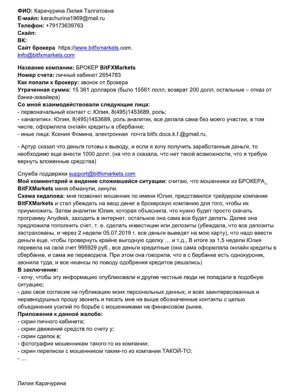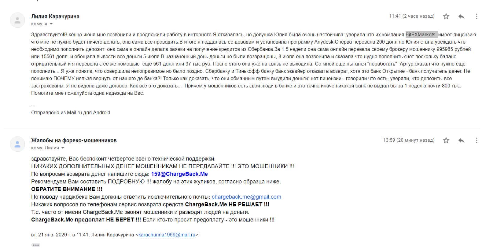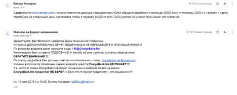 - Жалоба на аферистов БитФХМаркетс от клиента, утратившего 1000$