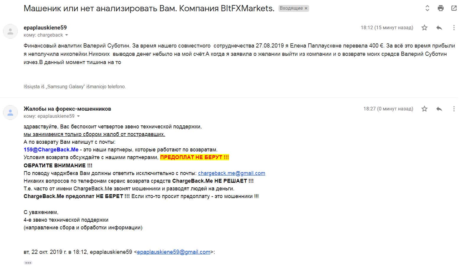 - Мошенники БитФХ Маркетс развели клиента на 400 евро