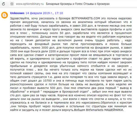 Подробная жалоба на БитФхМаркетс - клиент потерял примерно 2500$