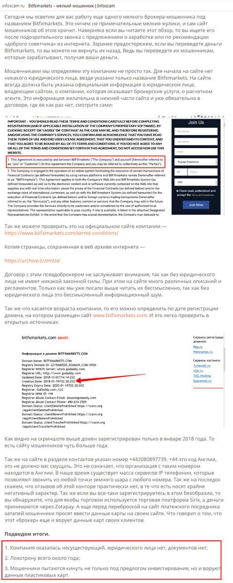Веб-портал infoscam ru написал об аферистах BitFXMarkets
