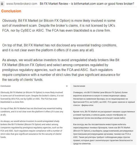 - Англоязычный ресурс также высказался о кидалах с BitFXMarkets