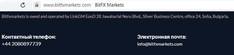- Контакты, представленные на сайте мошеннической конторы BitFXMarkets