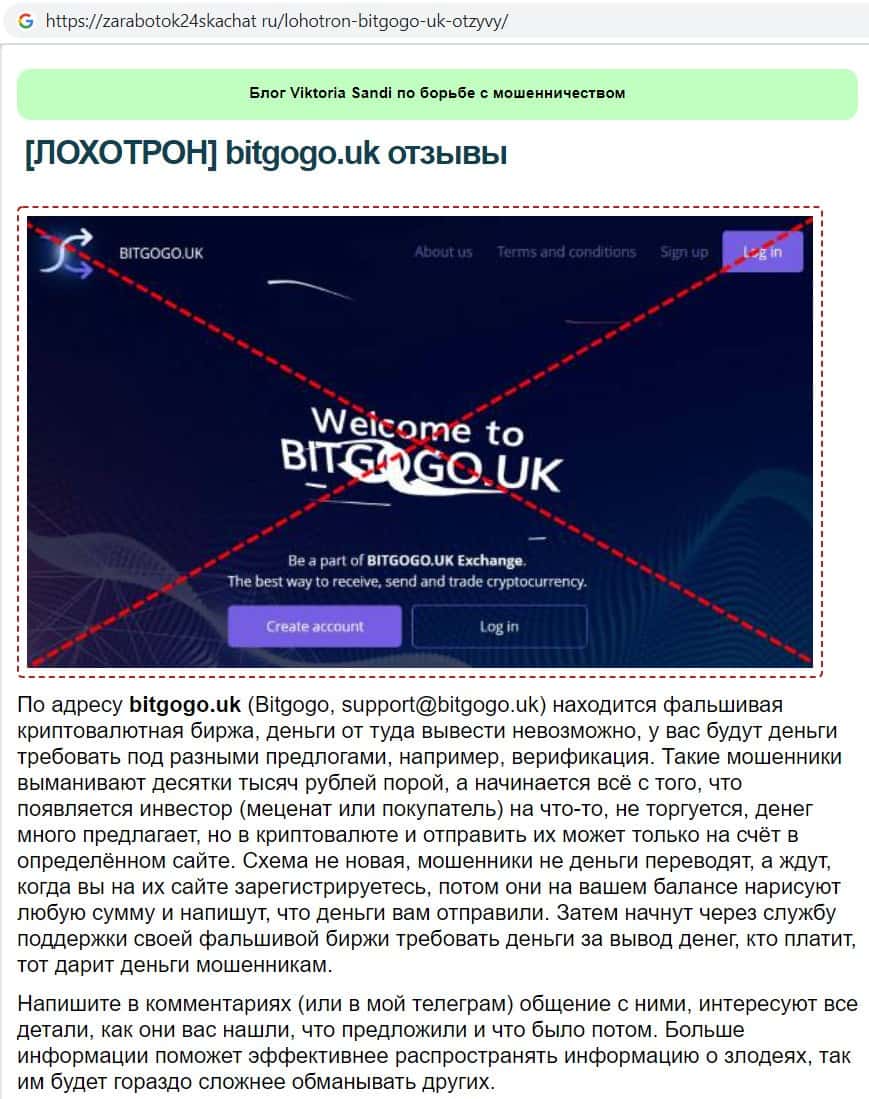 Онлайн-сервис zarabotok24skachat ru опубликовал статью о компании BitGoGo Uk, в которой сообщил, что данная организация является фальшивой криптовалютной биржей.