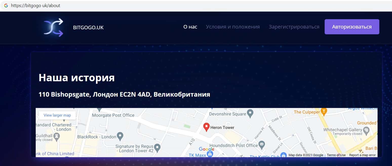 Так же финансовые аферисты BitGoGo Uk указали Лондон в качестве места регистрации, что в свою очередь является ложью, так как опытные мошенники знают как обмануть пользователей.