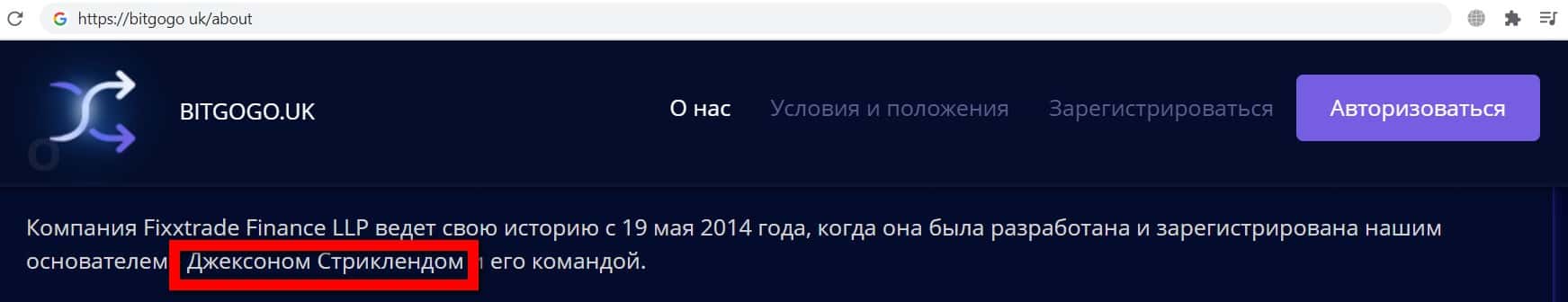Контора мошенников BitGoGo Uk назвала имя своего руководителя, но кроме имени нет никакой информации. Это говорит о том, что информация является фальшивкой.