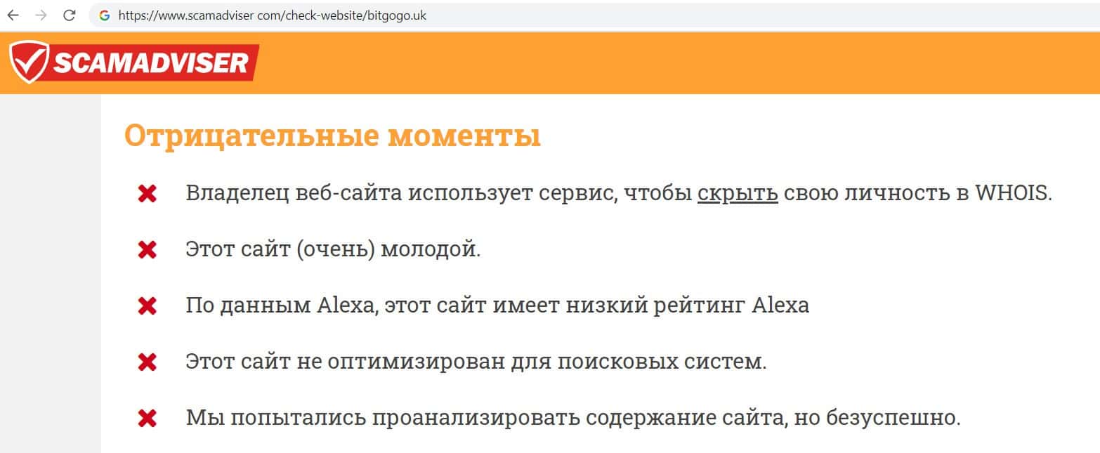- Мнение интернет-ресурса scamadviser com о сайте махинаторов BitGoGo Uk