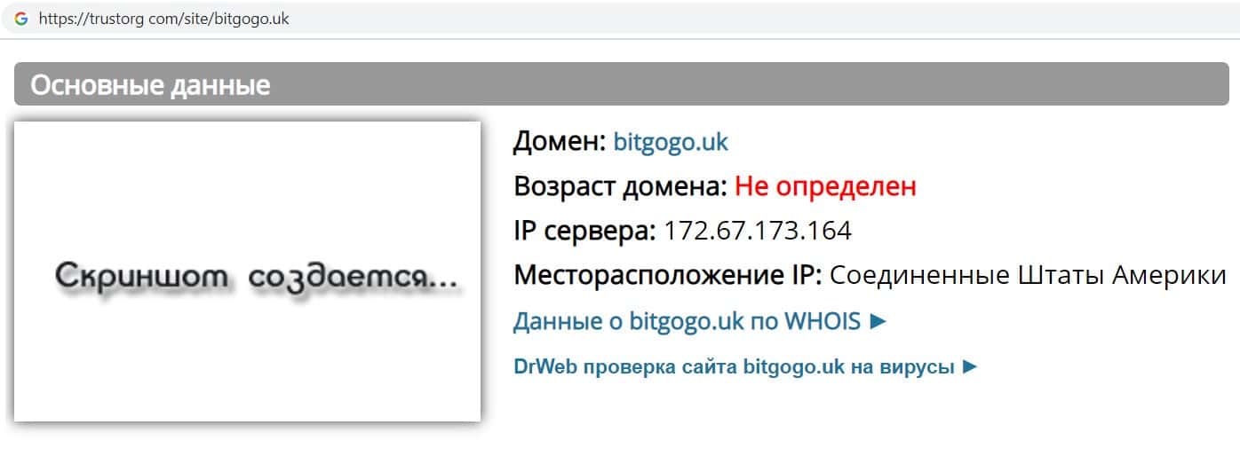 Мы воспользовались сайтом "Доверие в Сети", чтобы узнать возраст главного сайта мошенников Бит ГоГо. Оказалось, что жулики скрывают информацию о своём возрасте.