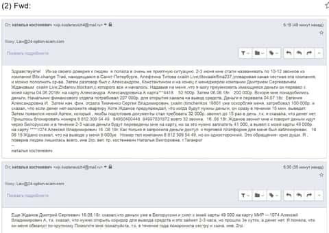 - а дальше уже мошенники-профессионалы обрабатывают клиентку, вынуждая пополнить счет до сумму внушительного размере;