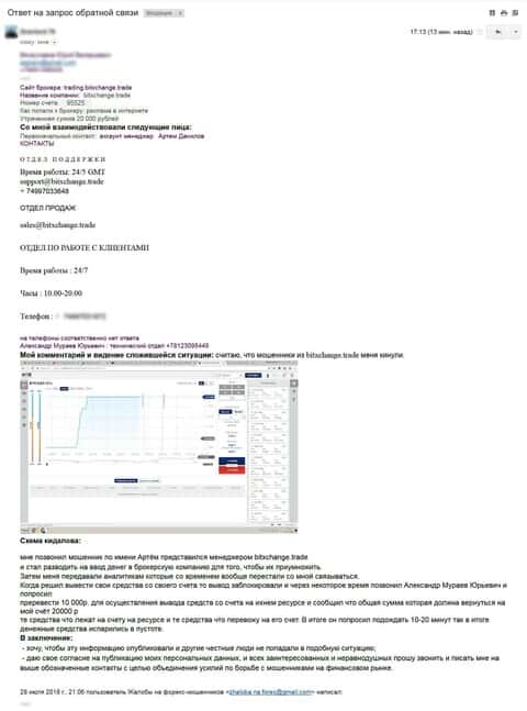 - Жалоба на Бит Икс Чэндж - клиент потерял как минимум 2 500$