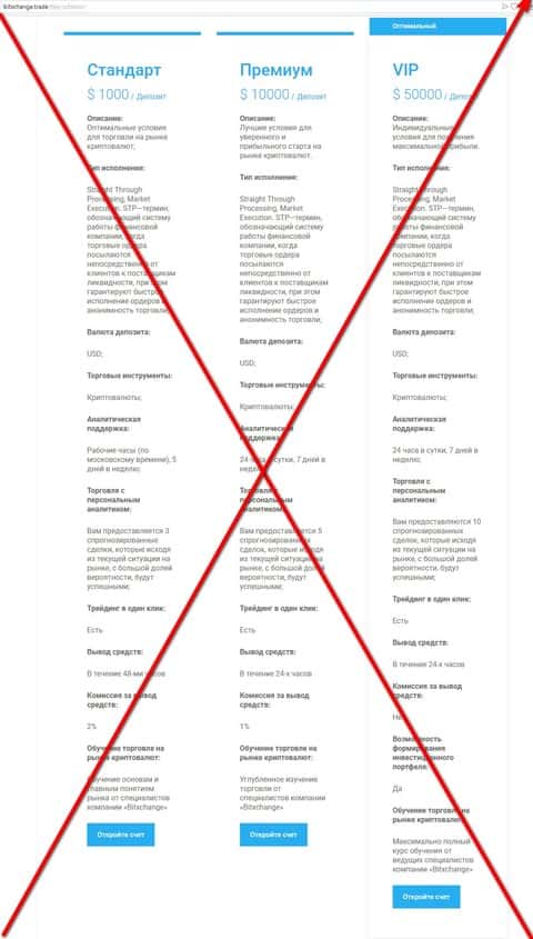 Кухня Бит Х Чейнж, которая не имеет не места регистрации, ни лицензий, ни руководства пытается завлечь своих новых клиентов вложениями в криптовалюты. Хотя на первый взгляд сайт смотрится неплохо, но начинка просто ужасная! Контора предлагает несколько пакетов инвестирования колеблющихся от 1000 до 50000 долларов со всеми привилегиями. Так делают хайпы и биржей тут и не пахнет.