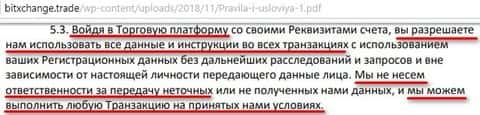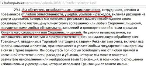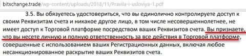 Информация, которая представлена в Клиентском соглашении абсурдна, если проанализировать, чем занимается контора BitXChange и как она разводит людей. Жулье заставляет признать клиента, что он несет ответственность за все действия в торговой платформе, но как же быть с аналитиками, которые совершают сделки на его счете?