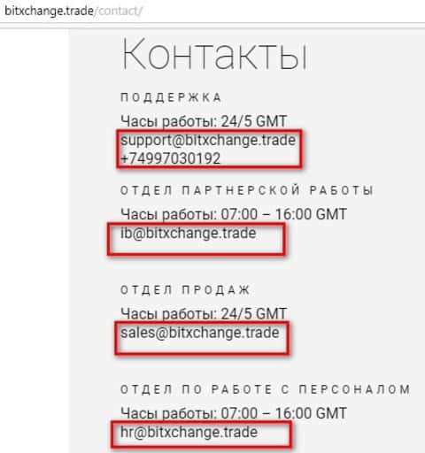 - техническая поддержка - support@bitxchange trade, телефон +74997030192;